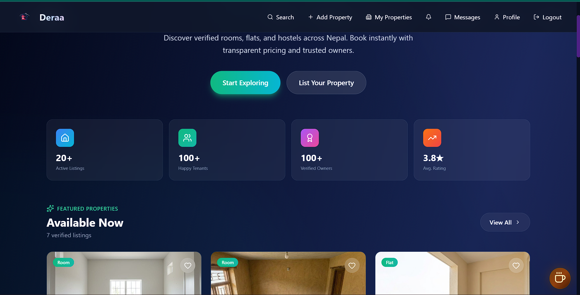 Deraa is a room finder website. A website which makes easy for owner and tennants to meet. It is full free, all features are free to use. Check it out!