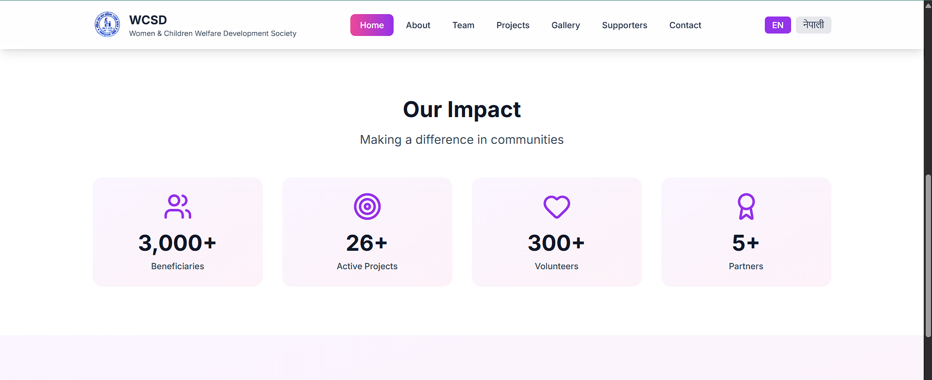 A website for a non-governmental organization to showcase their mission, projects, team and impacts.